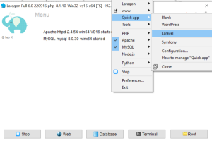 Laragon juga menyediakan fitur seperti Virtual Hosts, Quick create project, dan banyak lagi. Anda dapat menjelajahi fitur-fitur ini sesuai kebutuhan.