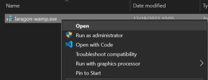 Setelah proses pengunduhan selesai, buka file installer Laragon (biasanya berbentuk file .exe).