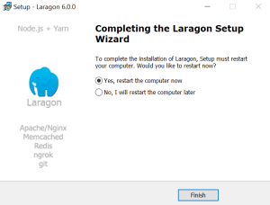 Setelah proses instalasi selesai, centang Yes, restart the computer now untuk memulai ulang komputer anda.